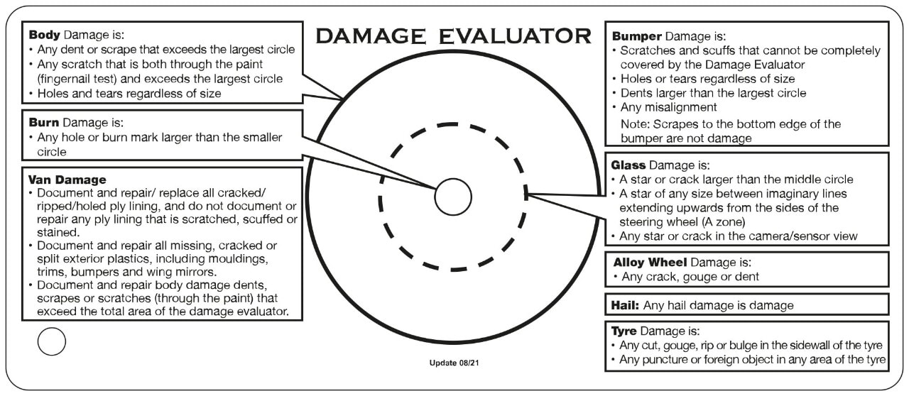 At Enterprise we have come up with a clear and simple way of measuring damage so you're not charged for every little scratch – our damage evaluator tool.